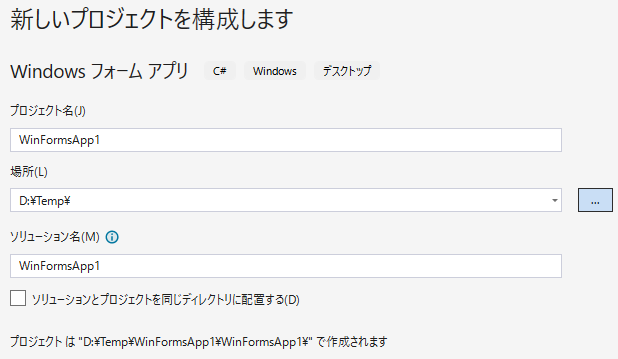 プロジェクト:WinFormアプリ