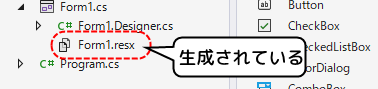 しかし、再起動させると.resxファイルが生成されるので、新規作成時の起動手順になにか間に合っていないのかも知れない