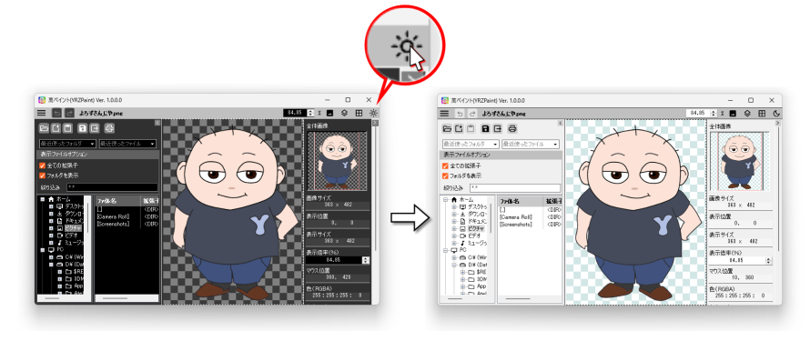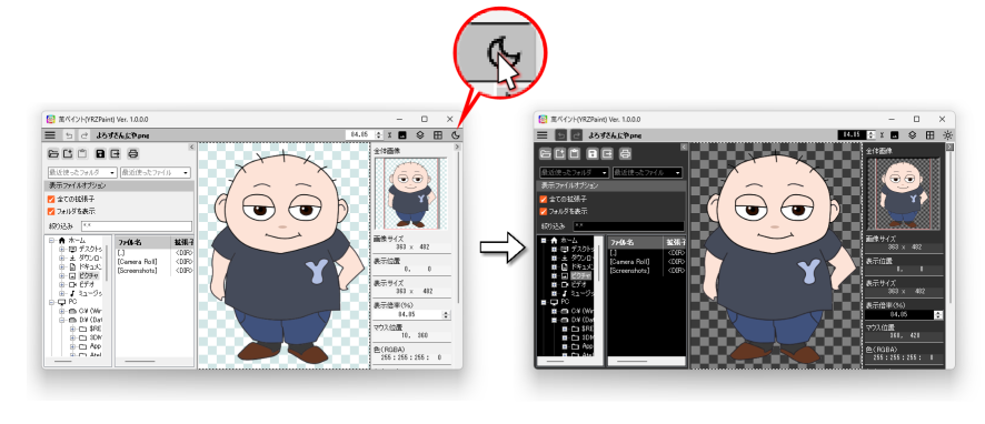 萬ペイントはテーマ(ライトモード、ダークモード)の切り替えが出来ます。