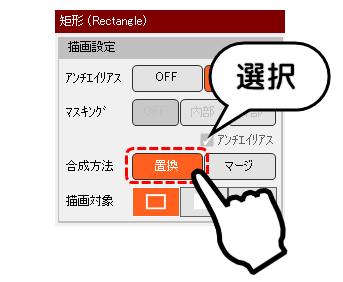 1.描画設定の合成方法を『置換』に切替